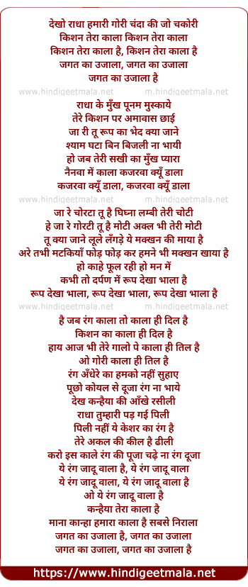 Lyrics of Dekho Radha Hamari Gori - देखो राधा हमारी गोरी