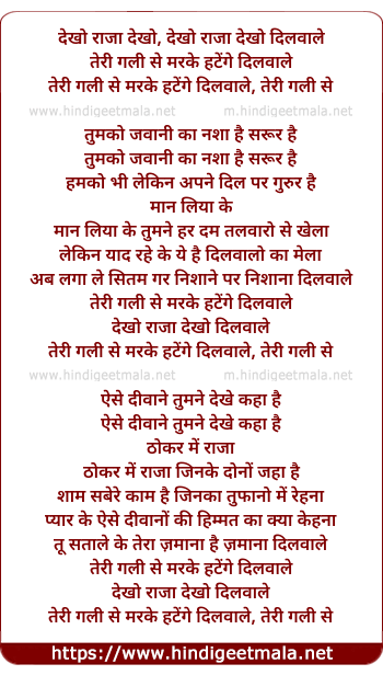 Lyrics of Dekho Raja Dekho, Dilwale Teri Gali Se Marke Hatenge - देखो राजा देखो, दिलवाले तेरी गली से मरके हटेंगे