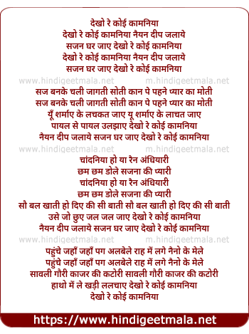 Lyrics of Dekho Re Koi Kaminiya - देखो रे कोई कामीनिया