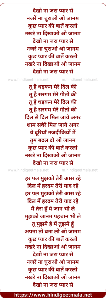 Lyrics of Dekhon Zara Pyar Se - देखो ना जरा प्यार से