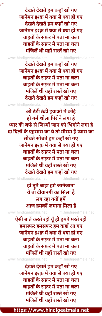 Lyrics of Dekhte Dekhte Ham Kahan Kho Gaye - देखते देखते हम कहाँ खो गए