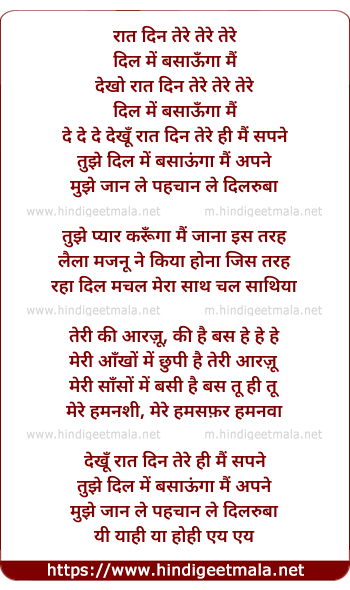 Lyrics of Dekhu Raat Din Tere Hi Main Sapane - रात दिन तेरे तेरे तेरे