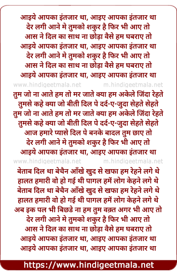 Lyrics of Der Lagi Aane Me Tumko Shukr Hai Phir Bhi Aaye To - देर लगी आने में शुक्र है फिर भी आये तो