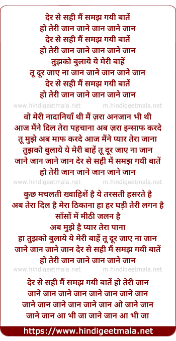 Lyrics of Der Se Sahi Mai Samajh Gayi - देर से सही मैं समझ गयी