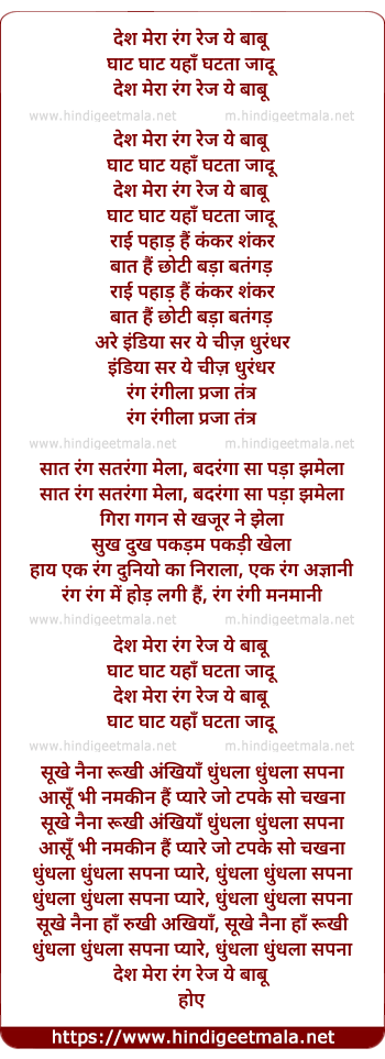Lyrics of Des Mera Rang Rez Ye Babu - देश मेरा रंग रेज ये बाबू