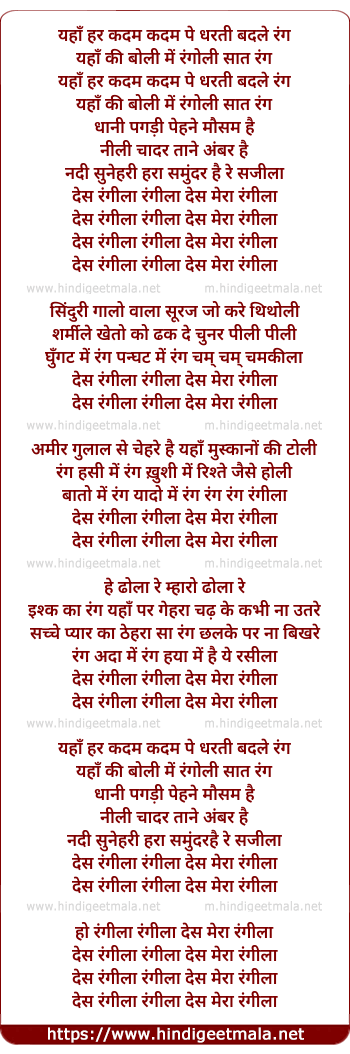 Lyrics of Des Rangila Rangila - देस रंगीला रंगीला