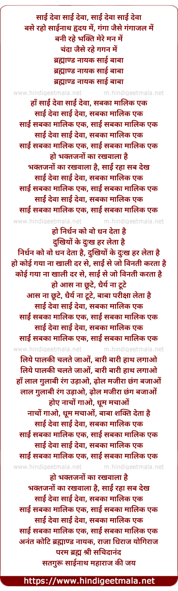 ha saai deva saai deva, sabka maalik ek