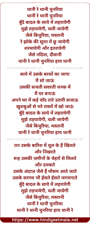 dhaani re dhaani chunariya dhaani re