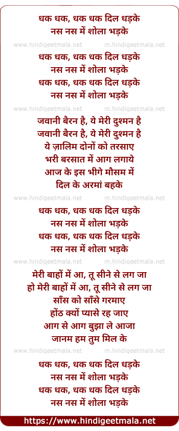 Lyrics of Dhak Dhak Dil Dhadke - धक धक दिल धड़के