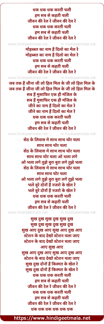 Lyrics of Dhak Dhak Karti Chali - धक धक करती चली