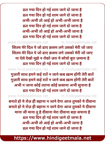 Lyrics of Dhal Gayaa Din Ho Gai Shaam Jaane Do Jaanaa Hai - ढल गया दिन हो गई शाम जाने दो जाना है