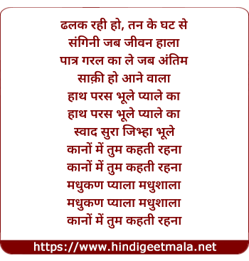 Lyrics of Dhalak Rahi Hai Tan Ke Ghat Se - ढलक रही हो, तन के घट से