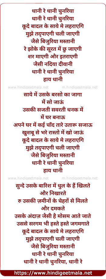 dhaani re dhaani chunariya, dhaani ree