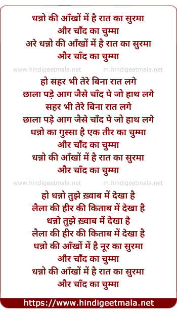Lyrics of Dhanno Ki Aankhon Me Hai Raat Ka Suramaa - धन्नो की आँखों में है रात का सुरमा