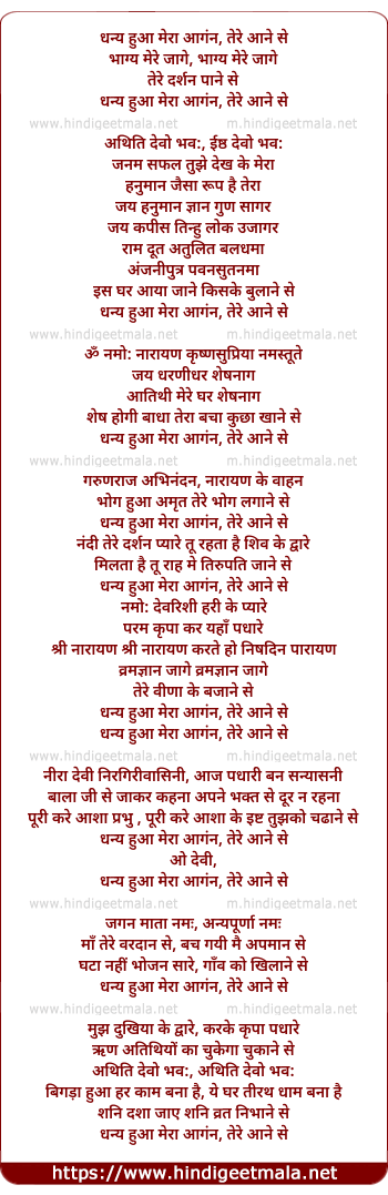 Lyrics of Dhanya Hua Mera Aangan