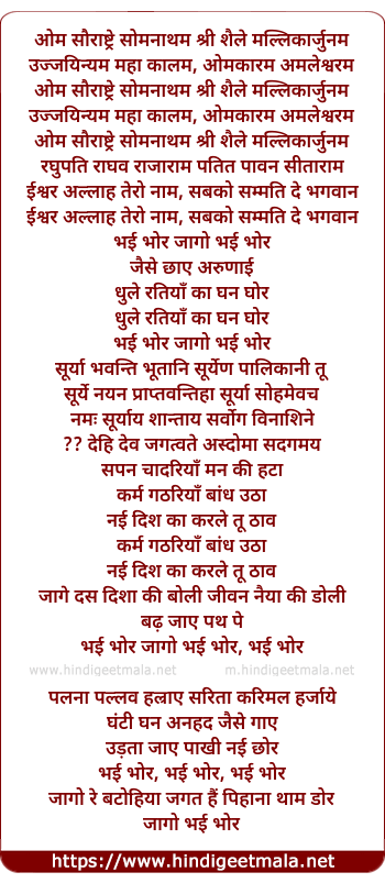 Lyrics of Dharm Bhayee Bhor Jaago Bhayee Bhor - धर्म भई भोर जागो भई भोर