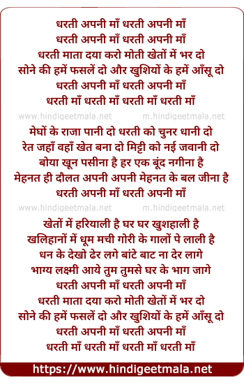 Lyrics of Dharti Apni Maa - धरती अपनी माँ