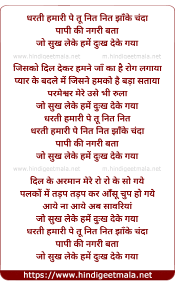 dharti hamari pe tu nit nit jhake chanda
