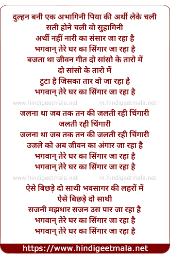 Lyrics of Dharti Ka Nahi Nari Ka Sansar Ja Raha Hai - अर्थी नहीं नारी का संसार जा रहा है