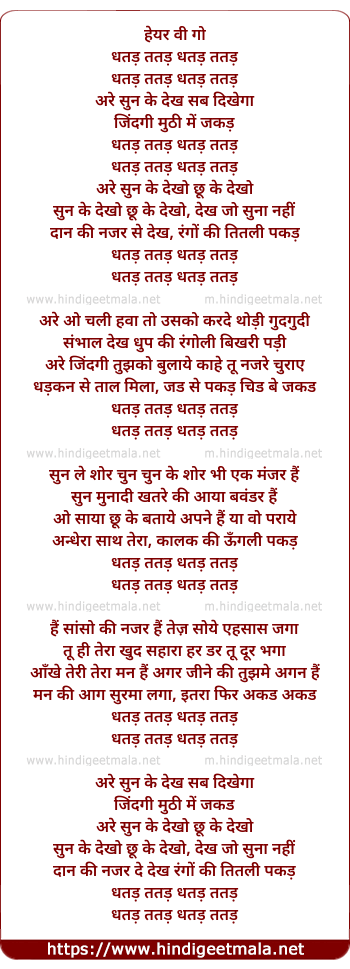 Lyrics of Dhatad Tatad - धतड़ ततड़