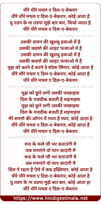 Lyrics of Dheere Dheere Machal Ae - धीरे धीरे मचल ए
