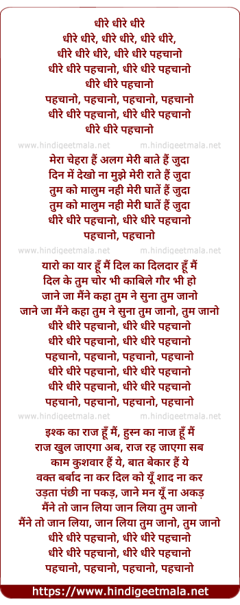 Lyrics of Dheere Dheere Pehchano - धीरे धीरे पहचानो
