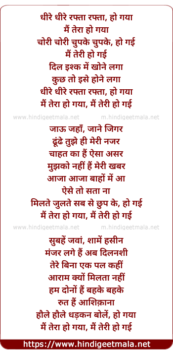 Lyrics of Dheere Dheere Rafta Rafta - धीरे धीरे रफ्ता रफ्ता, हो गया