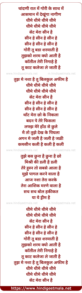 Lyrics of Dhime Dhime Dhime - धीमे धीमे धीमे