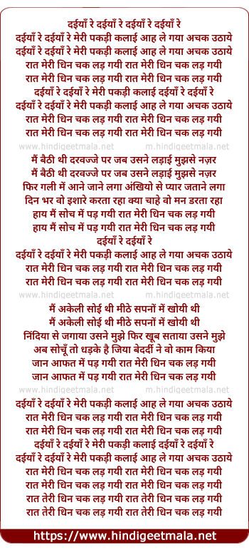 daiyya re daiyya re meri pakadi kalaai aah le gaya achak uthaaye