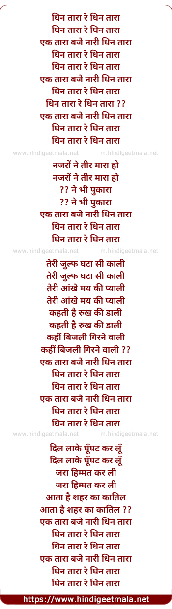 Lyrics of Dhin Tara Re Dhin Tara - धिन तारा रे धिन तारा