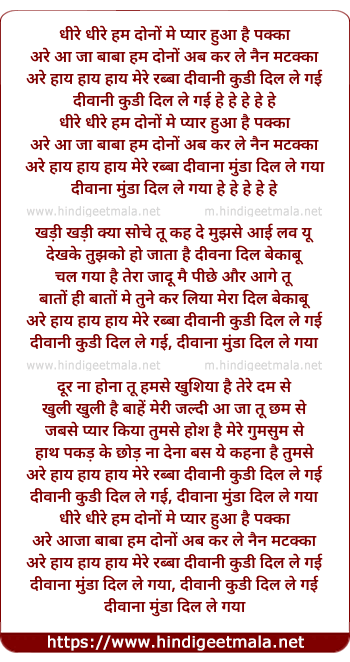 are hay hay hay mere rabba divani kudi dil le gai