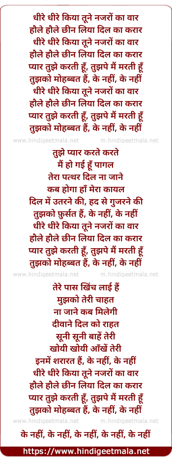 Lyrics of Dhire Dhire Kiya Tune - धीरे धीरे किया तूने नजरों का वार