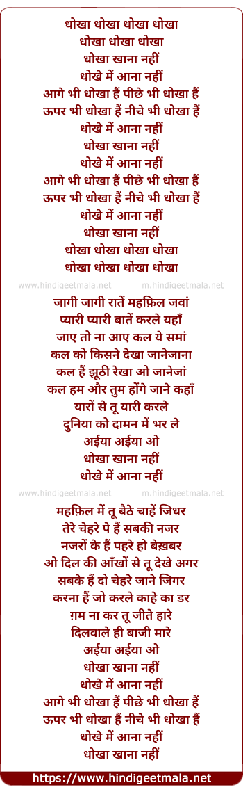 Poetic Translation - Lyrics of Dhoka Khana Nahi - धोखा खाना नहीं