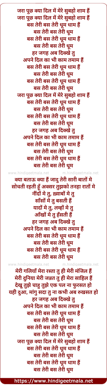 Lyrics of Dhoom Dhaam - धूम धाम