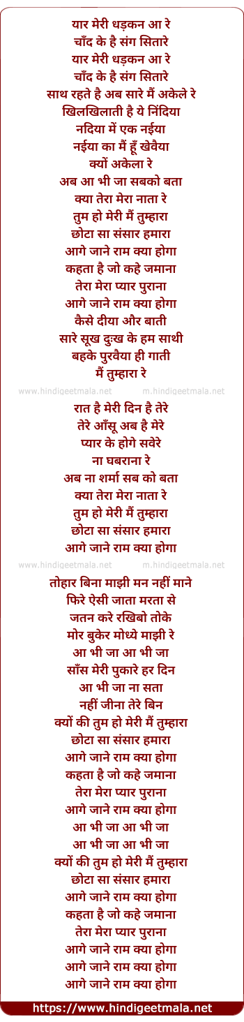 Lyrics of Dhoom Pichak Dhoom - यार मेरी धड़कन आ रे
