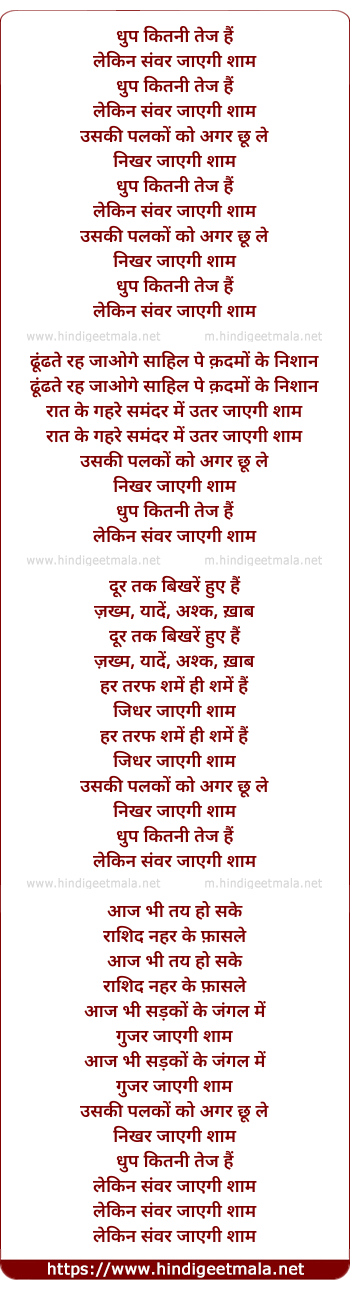 Lyrics of Dhoop Kitnee Tez Ho - धुप कितनी तेज हैं