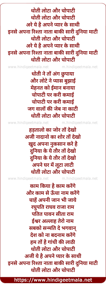 Lyrics of Dhoti Lota Aur Chopati - धोती लोटा और चोपाटी