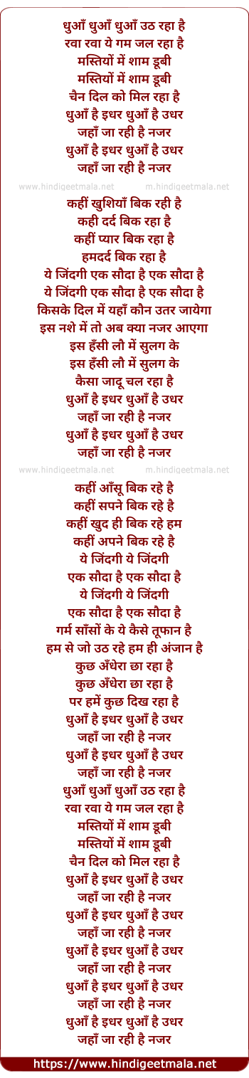 Lyrics of Dhua Dhua Uth Raha Hai - धुआँ धुआँ उठ रहा है