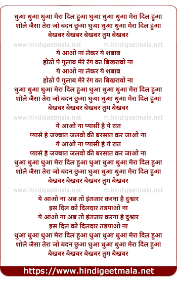 Lyrics of Dhuan Dhuan Mera Dil Huaa - धुआ धुआ मेरा दिल हुआ