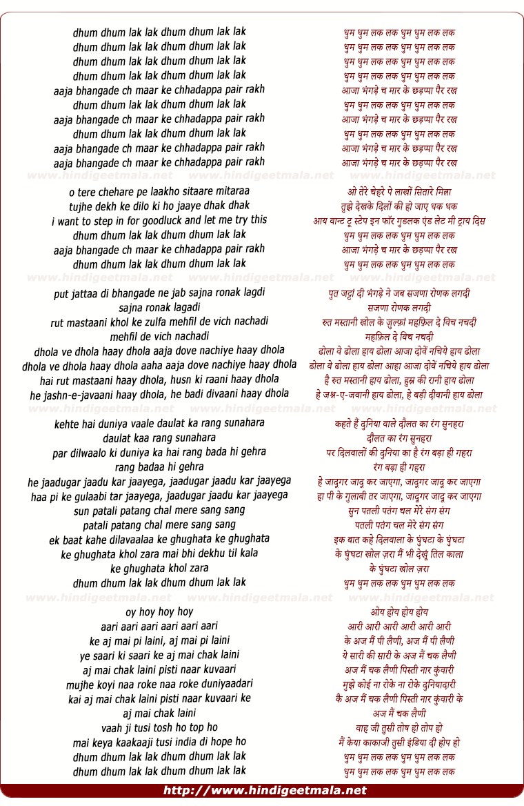 Lyrics of Dhum Dhum Lak Lak - धुम धुम लक लक