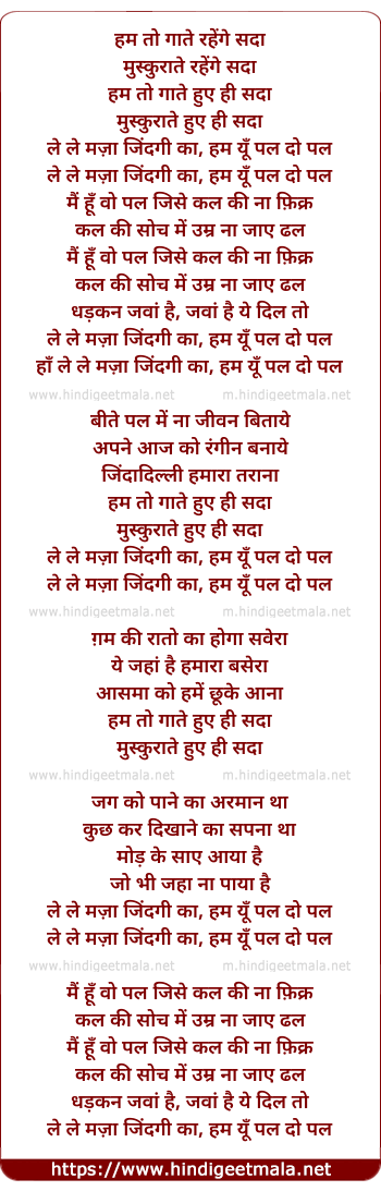 Lyrics of Hum To Gaate Rahenge Sada - हम तो गाते रहेंगे सदा