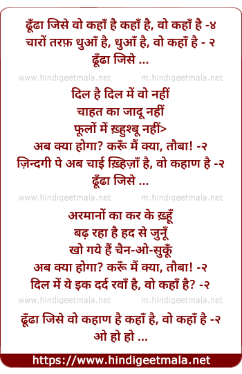 Lyrics of Dhundhaa Jise Vo Kahaan Hai - ढूँढा जिसे वो कहाँ है कहाँ है, वो कहाँ है -४