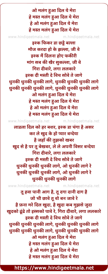 Lyrics of Dhunki Dhunki Dhunki Laage - धुनकी धुनकी धुनकी लागे