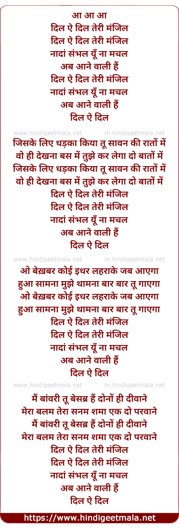 Lyrics of Dil Ae Dil Teri Manzil - दिल ऐ दिल तेरी मंजिल