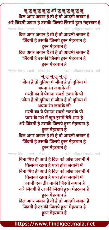 Lyrics of Dil Agar Jawaan Hai To - दिल अगर जवान है तो