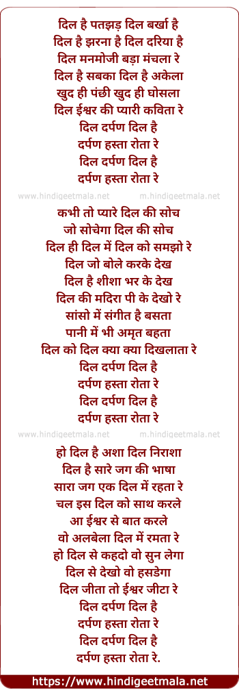 dil darpan dil hai darpan hasta rota re, dil darpan dil hai darpan hasta rota re