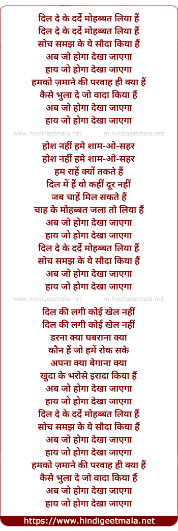 Lyrics of Dil De Ke Darde Mohabbat Liya Hai - दिल दे के दर्दे मोहब्बत लिया हैं