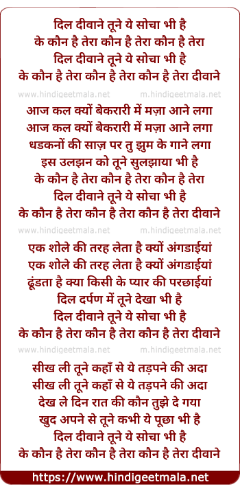 Lyrics of Dil Deewane Tune Ye Socha Bhi Hai Ke Kaun Hai Tera - दिल दीवाने तूने ये सोचा भी है के कौन है तेरा
