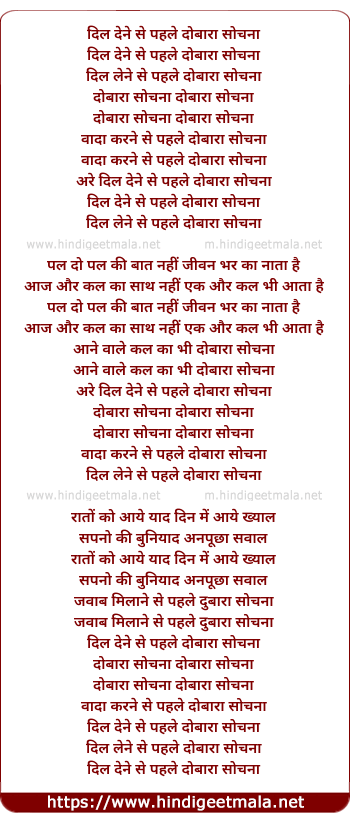 Lyrics of Dil Dene Se Pehle Dobara Sochna - दिल देने से पहले दोबारा सोचना