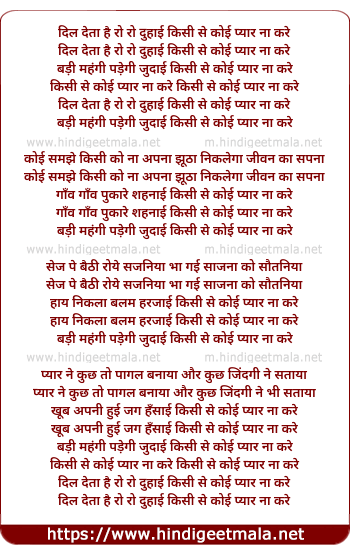 Lyrics of Dil Deta Hai Ro Ro Duhaayi - दिल देता है रो रो दुहाई